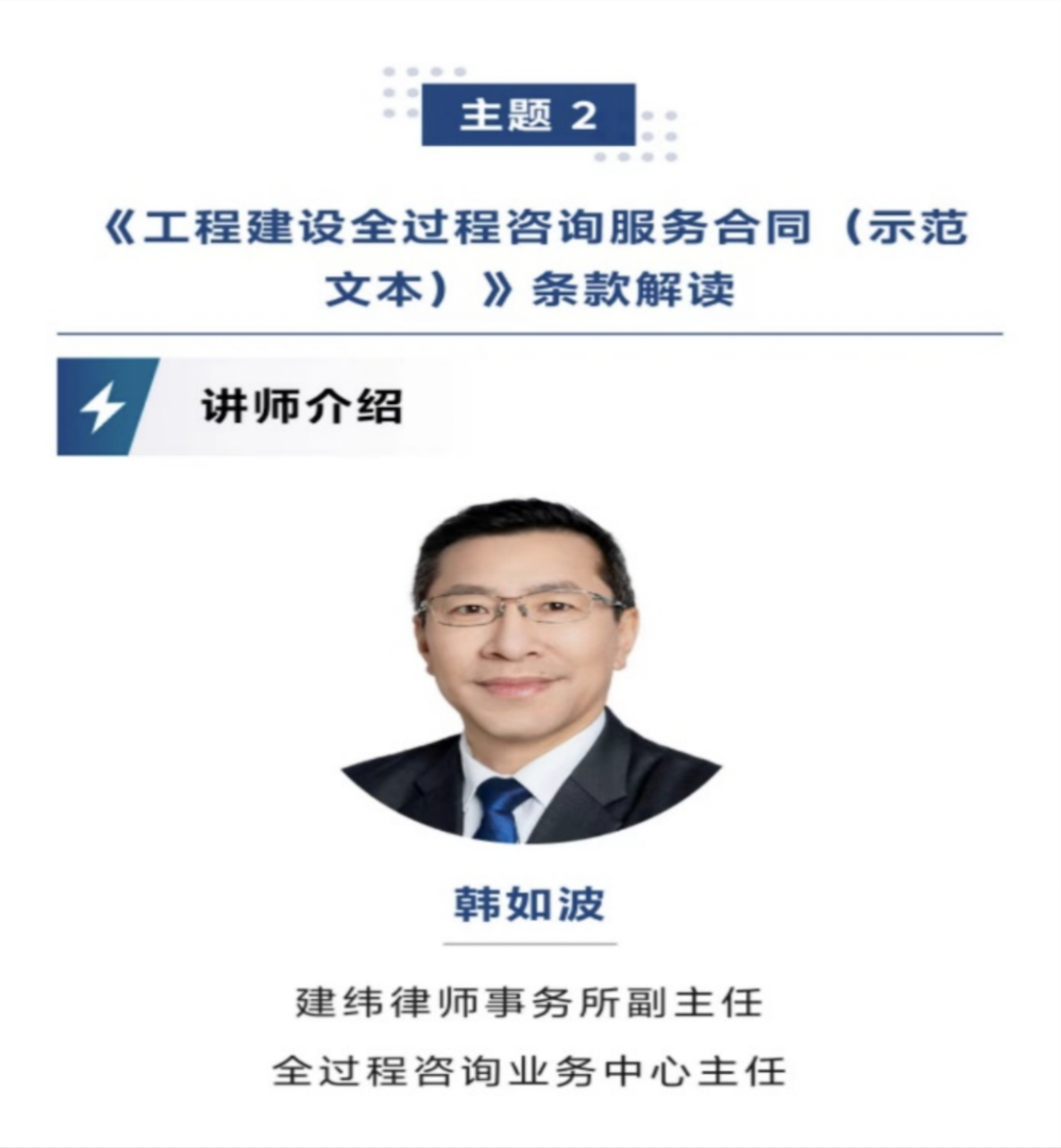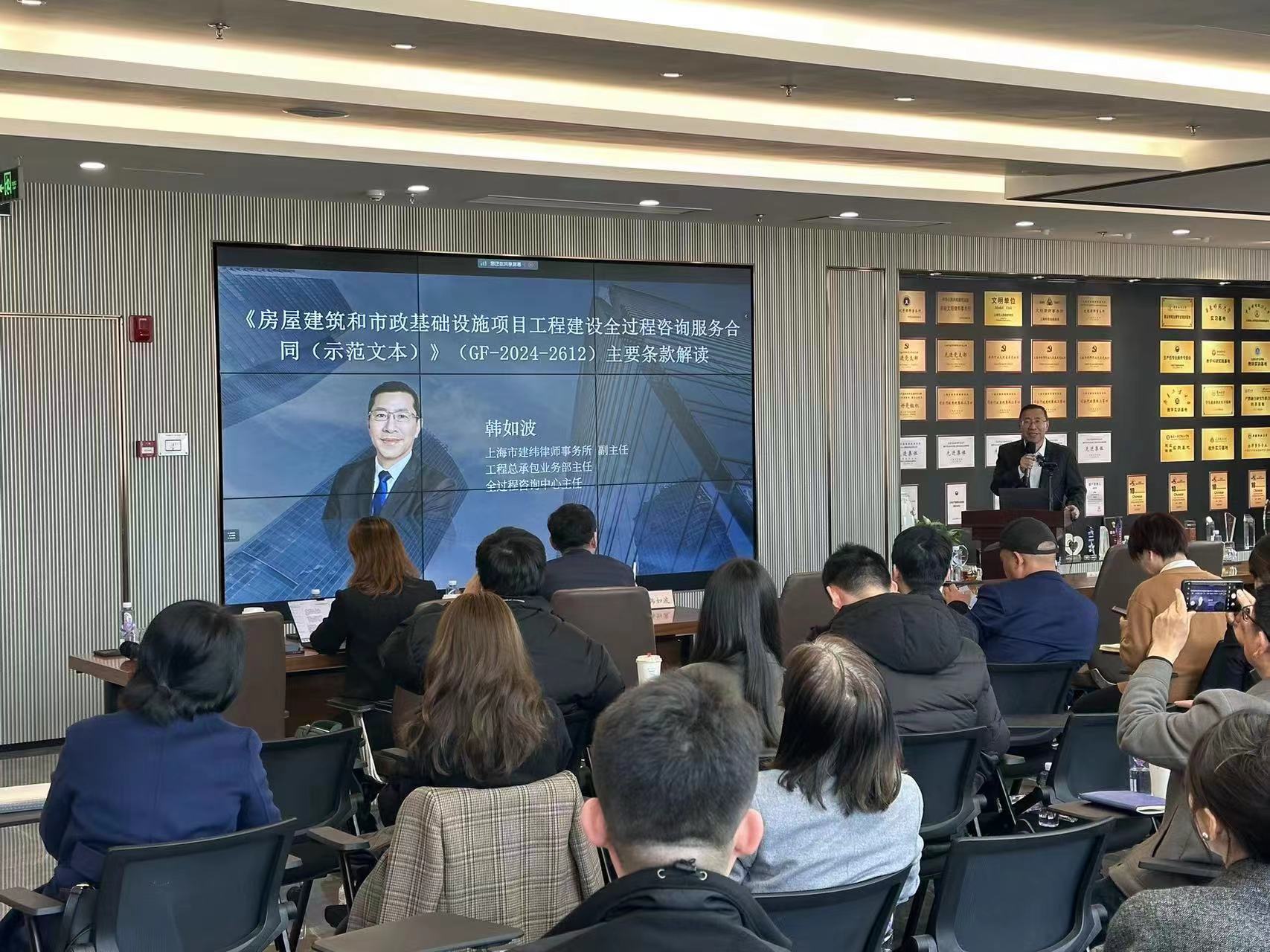 本次培訓首先由上海市律師協會會長邵萬權先生致詞,隨后全程分享了既有理論高度、又有案例經驗的兩場精彩演講,具體由建緯研究院院長朱樹英主講“《工程建設全過程咨詢服務合同(示范文本)》的法律適用與實務問題”,由建緯律師事務所副主任、全過程咨詢業務主任韓如波主講“《工程建設全過程咨詢服務合同(示范文本)》條款解讀”。公司通過騰訊視頻鏈接,同步組織全員參會。