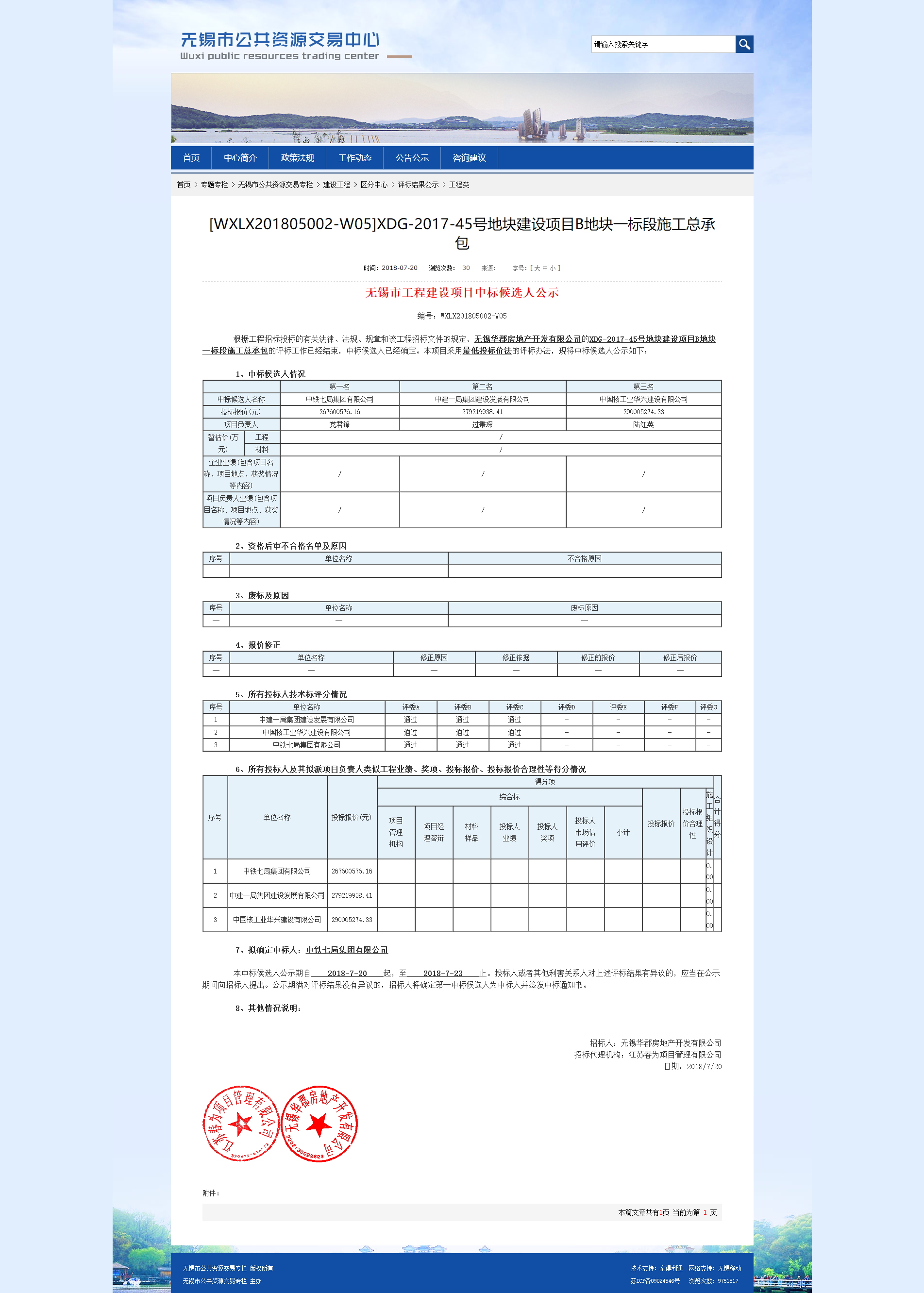 中標公示一標段