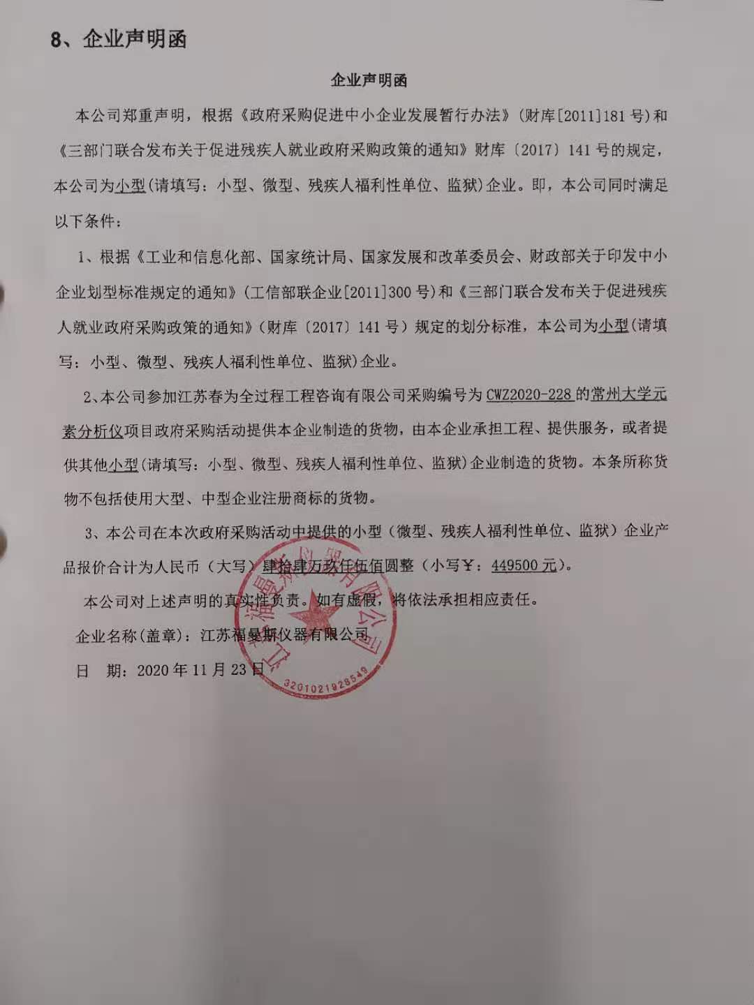 名稱:元素分析儀 品牌:見附件 規(guī)格型號(hào):見附件 數(shù)量: 一套 單價(jià):人民幣肆拾肆萬(wàn)玖仟叁佰元整(小寫:¥449300.00元) |