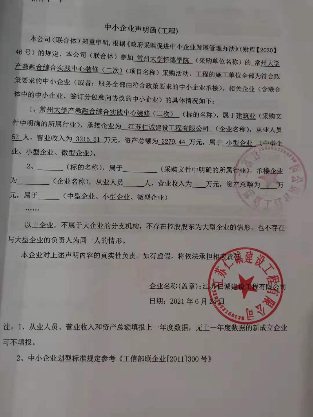 常州大學產教融合綜合實踐中心裝修(二次)中標(成交)結果公告