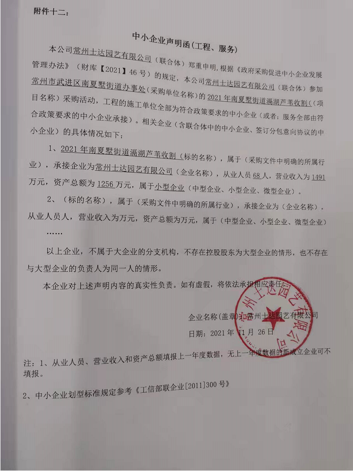 名稱:2021年南夏墅街道滆湖蘆葦收割 服務范圍:南夏墅街道滆湖油車港(含太滆運河入滆湖口)和濱湖公園濕地蘆葦收割。 服務要求:收割能按時間和要求完成,蘆葦收割面平整,要求割到根部。 服務時間:三年,合同一年一簽。 服務標準:滿足采購文件相關服務標準。 |