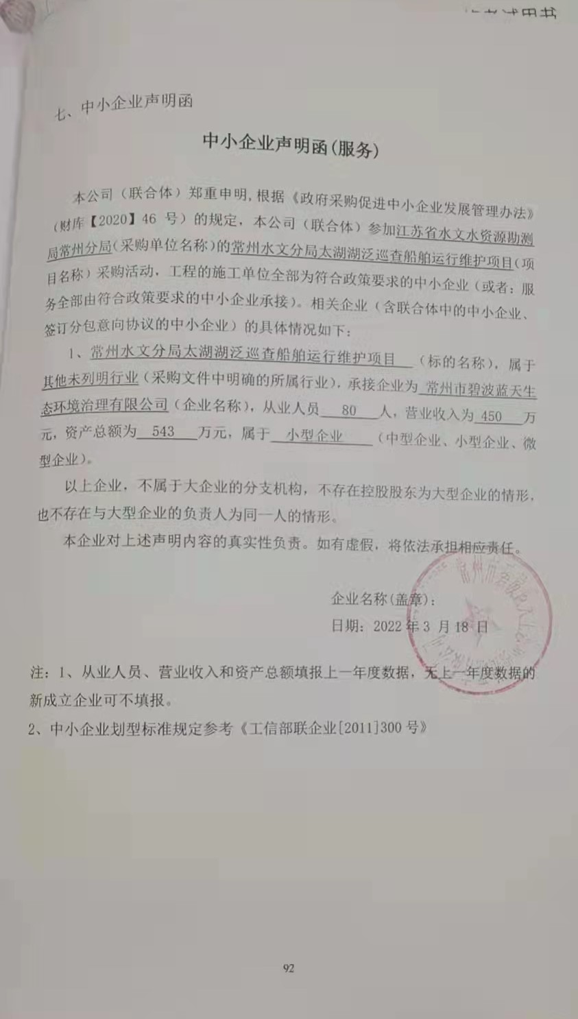 供應商名稱: 常州市碧波藍天生態環境治理有限公司